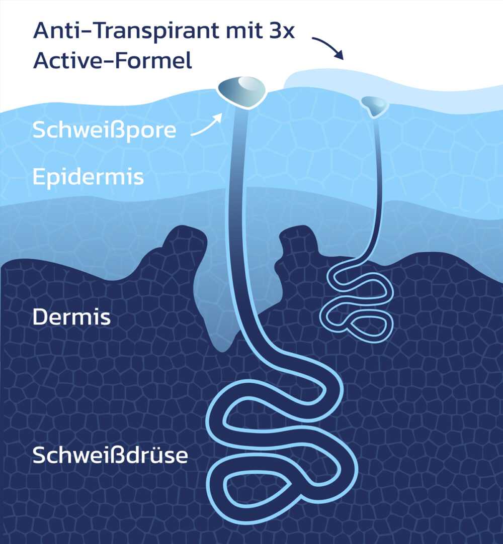 Unsere klinisch getestete 3-fach Wirkformel enthält drei ideal aufeinander abgestimmte hocheffektive Wirkstoffe. Diese spezielle Kombination sorgt dafür, dass Triple Dry auch bei starker Transpiration bis zu 100 Stunden lang wirkt. Die Schweißabsonderung wird reduziert und die Bakterien, die den Schweißgeruch verursachen, werden bekämpft.